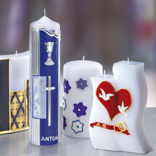 Sie können Motive daraus ausschneiden und mit leichtem Druck auf eine Kerze aufbringen. Etwas Wärme ist dabei hilfreich, eine warme Hand reicht schon, damit das Verzierwachs gut auf dem Untergrund haftet. Sie können (speziell die Unifarben) mit der Hand ein wenig anwärmen und dann kneten oder modellieren und ganz nach Ihrer Fantasie Blüten oder andere hübsche Dinge formen und diese dann mit dem Ansatz und etwas Druck auf einer Kerze befestigen. Man kann auch ein Stäbchen (Holz z.B.) nehmen und den Ansatz an der Kerze etwas verstreichen und erhält so noch bessere Anhaftung.